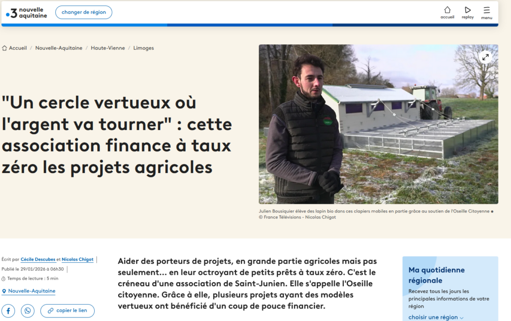 Sur ICI Limousin, retrouver l’interview de notre président qui explique le fonctionnement de notre association.